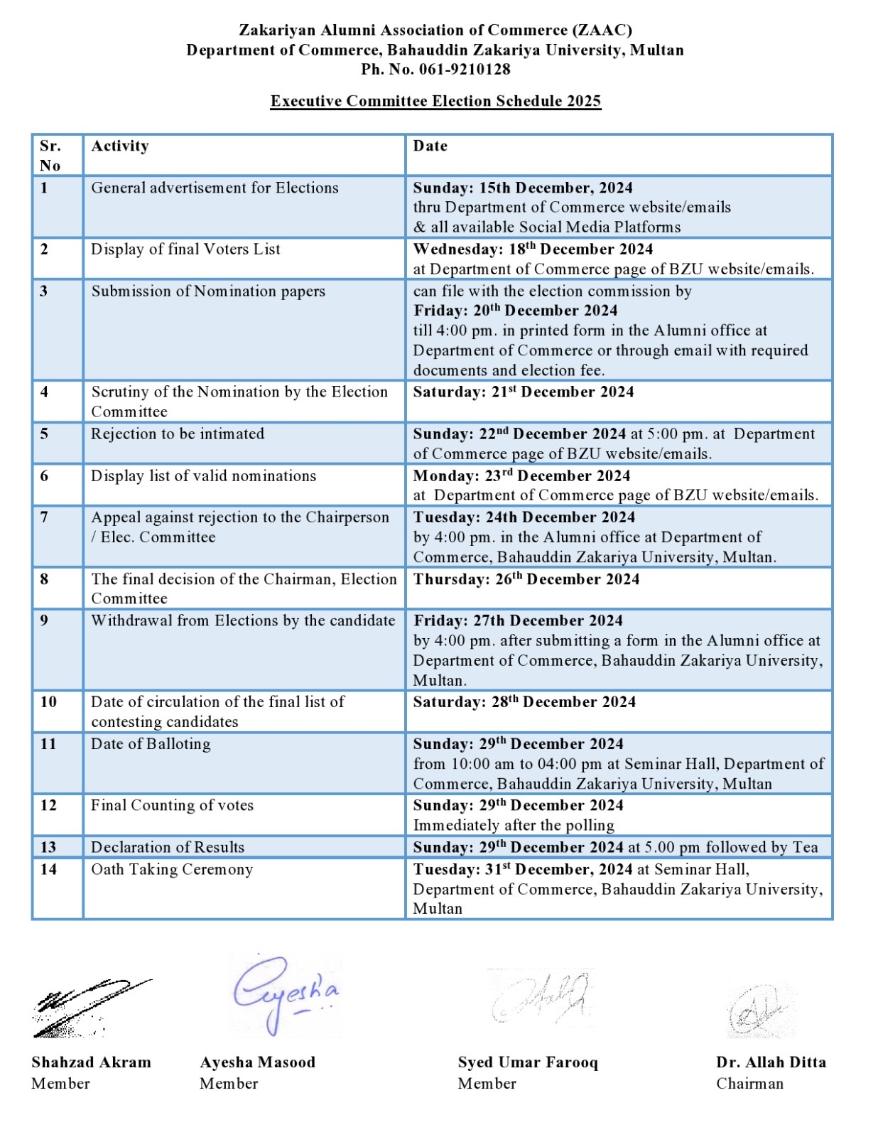 Executive Committee Election Schedule - Zakariyan Alumni Association of Commerce (ZAAC)