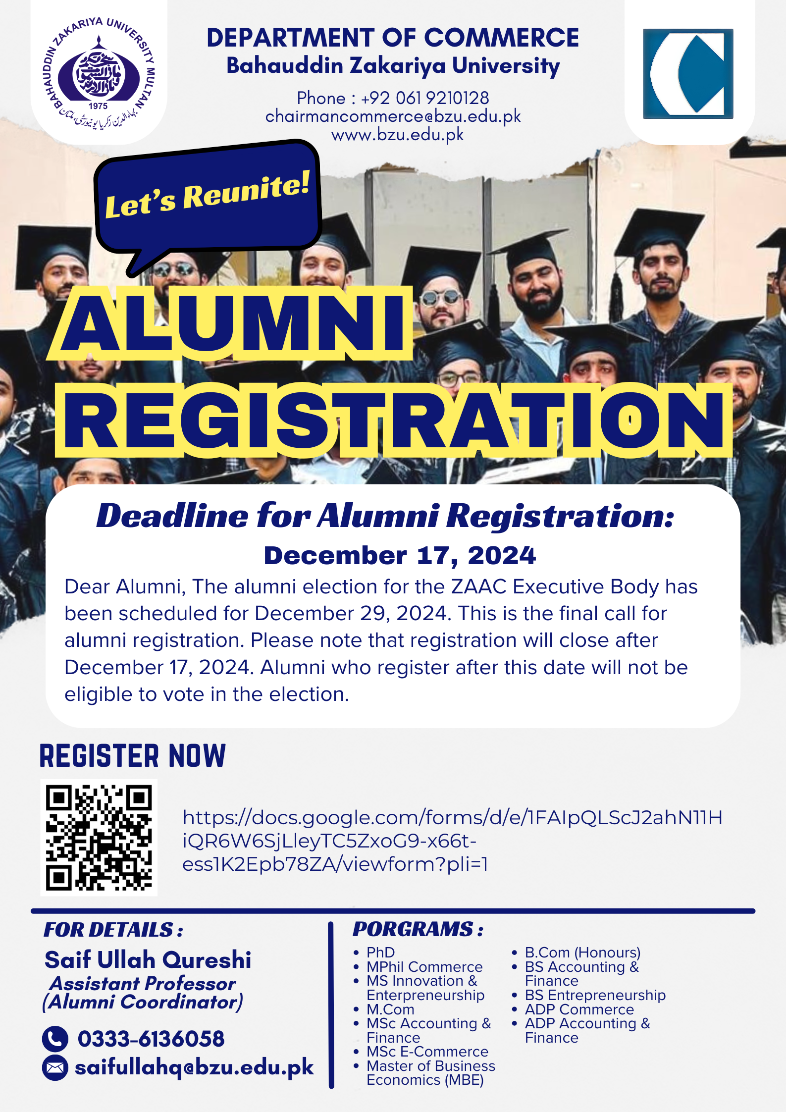 Final Call for Registration - Zakariyan Alumni Association of Commerce (ZAAC)