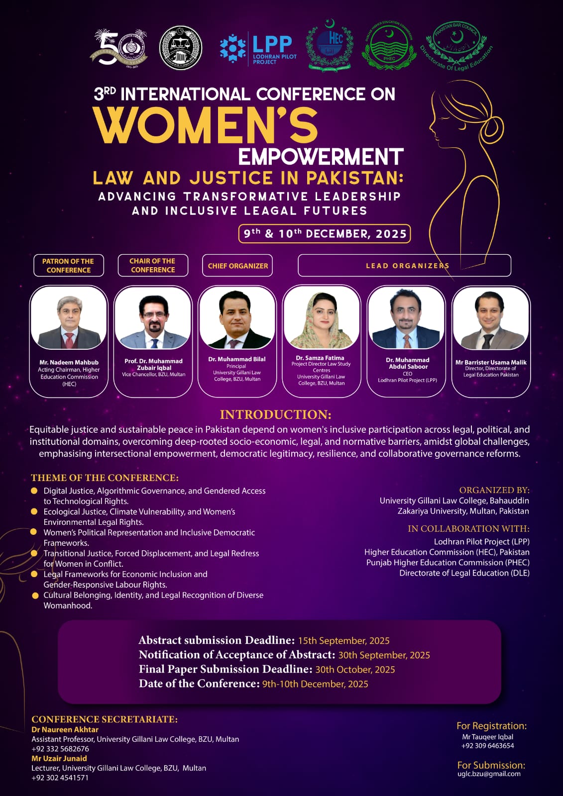 3rd International Conference on Women Empowerment: Law and Justice in Pakistan (2025)